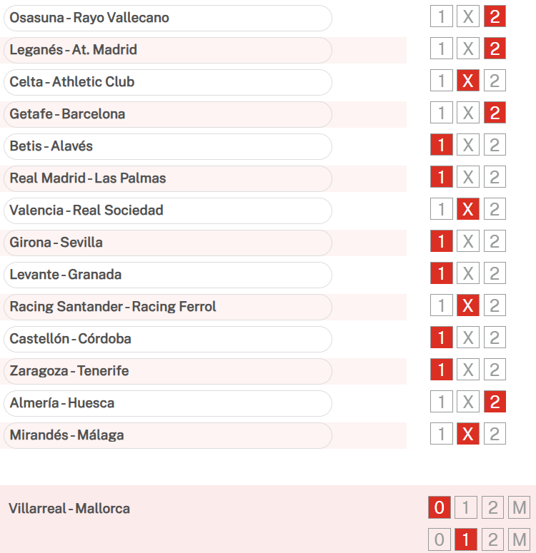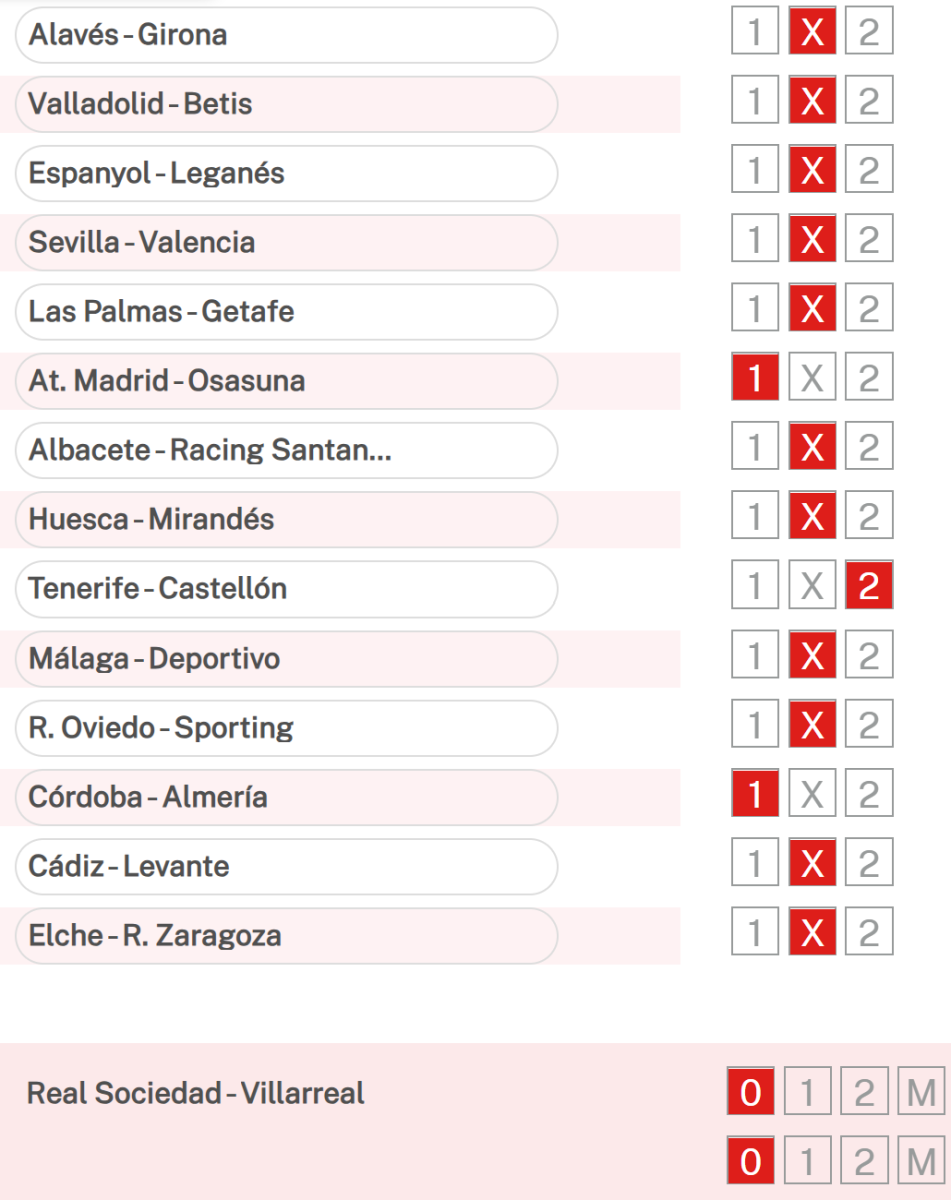 Pues vamos con la última jornada de la Quiniela de este año, a ver si tenemos más suerte esta vez. Veamos que partidos entran en esta jornada, 18ª de Primera División, 21ª de Segunda División.