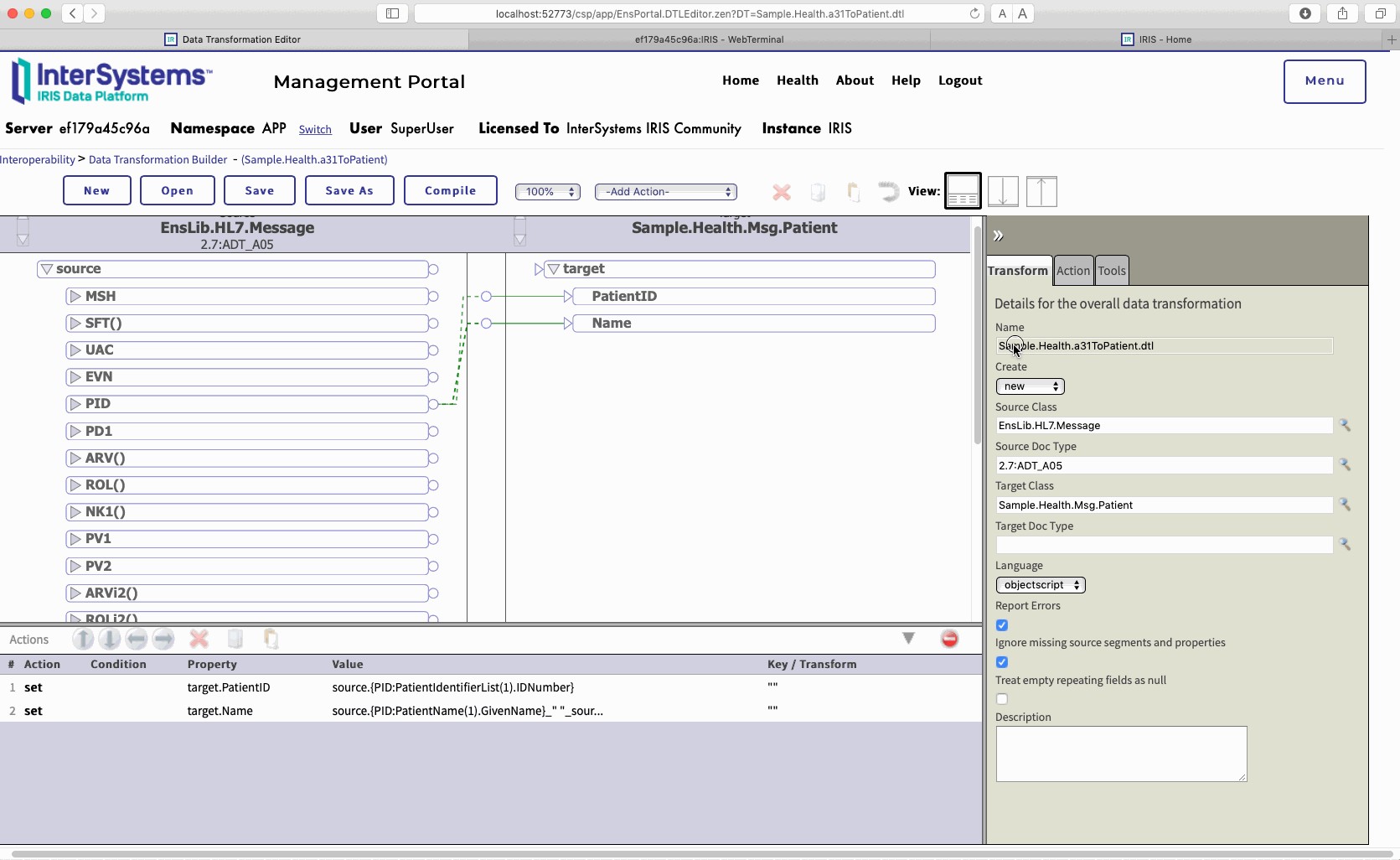 - Messages, Services, Operations, Processes, HL7, Data Transforms, Rou