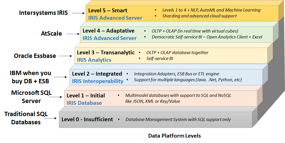 Con InterSystems IRIS es posible. Con un solo producto, tienes SQL + NoSQL + ESB + BI + Open Analytics + Modelos analíticos virtuales en tiempo real + NLP + AutoML + ML (con Python) y cloudAvanzada + soporte a sharding.