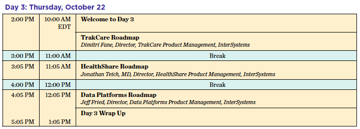 Puedes descargarte el programa de cada día en: intersystems.com/summit20