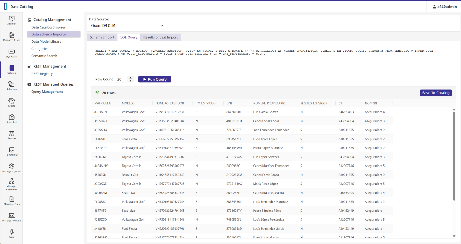 Mediante IDFS, una vez definida las conexiones a tus diferentes bases de datos podrás comenzar las tareas de descubrimiento y catalogación de los mismos haciendo uso de funcionalidades como las de la importación de esquemas definidos en la base de datos.