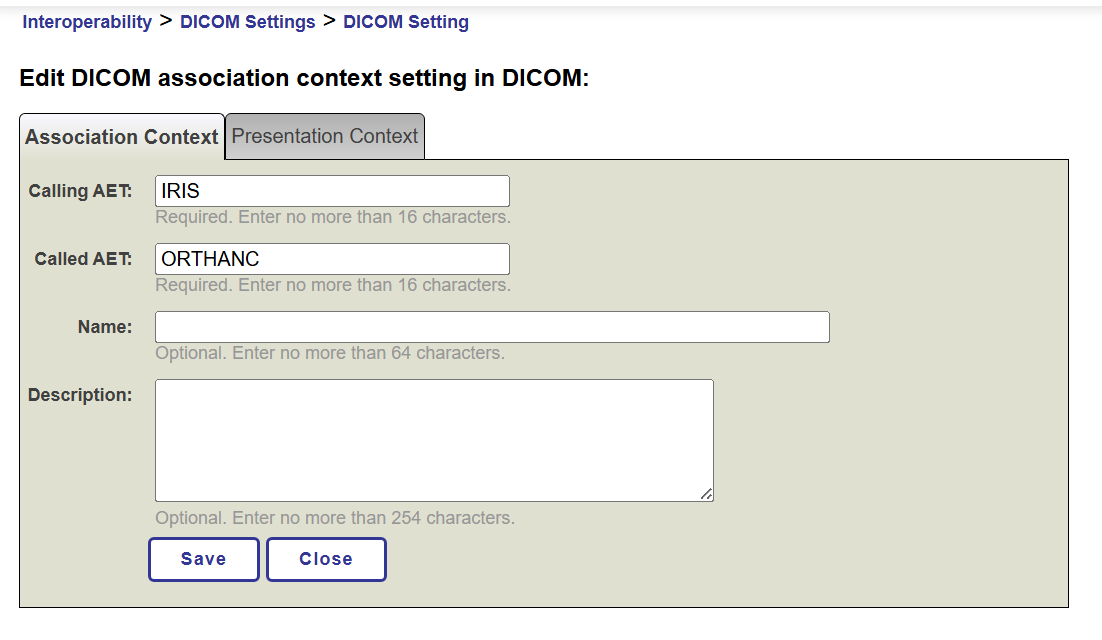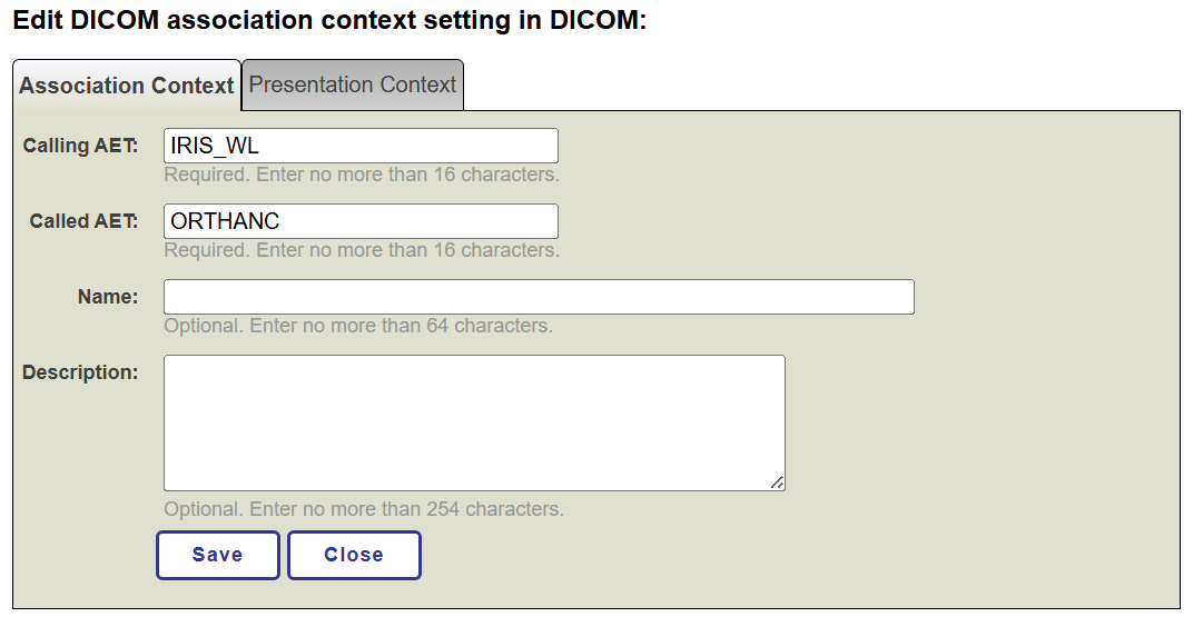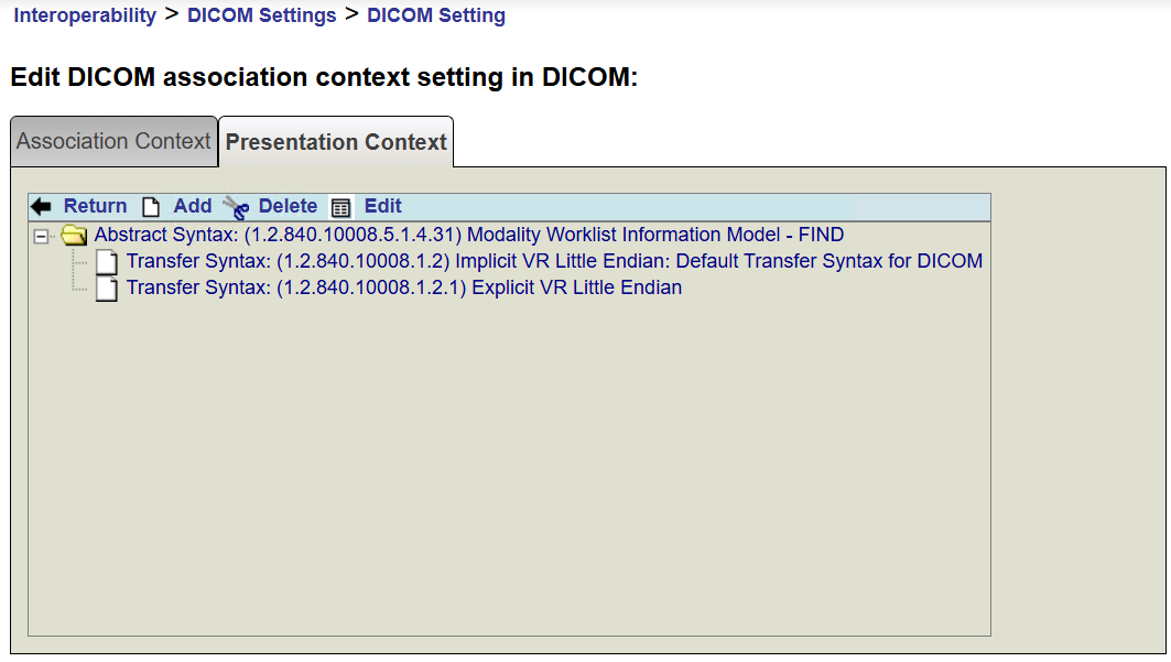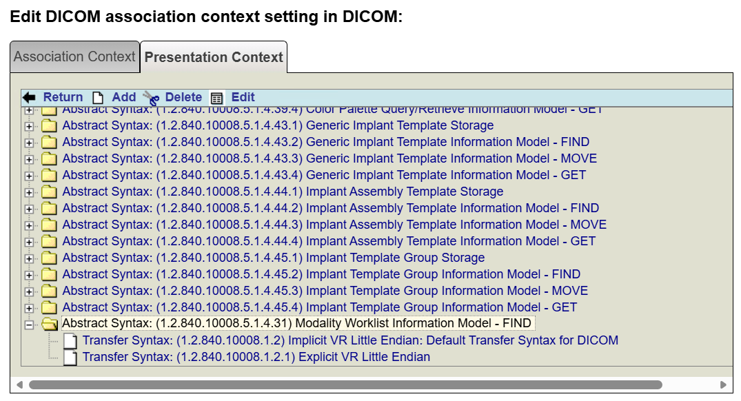 Y además en la opción de Presentation Context tenemos definido dicho Abstract Syntax: