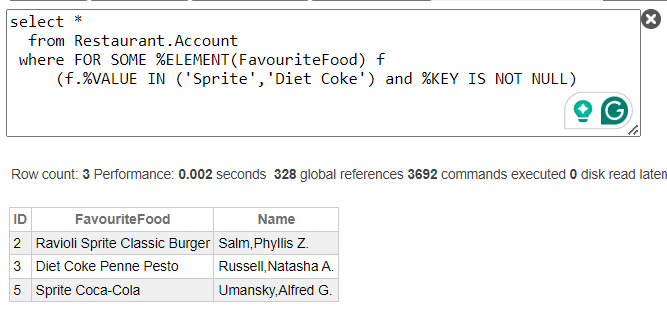 whereFORSOME %ELEMENT(FavouriteFood) f