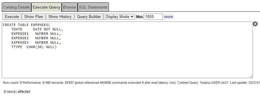 CREATETABLE EXPENSES(