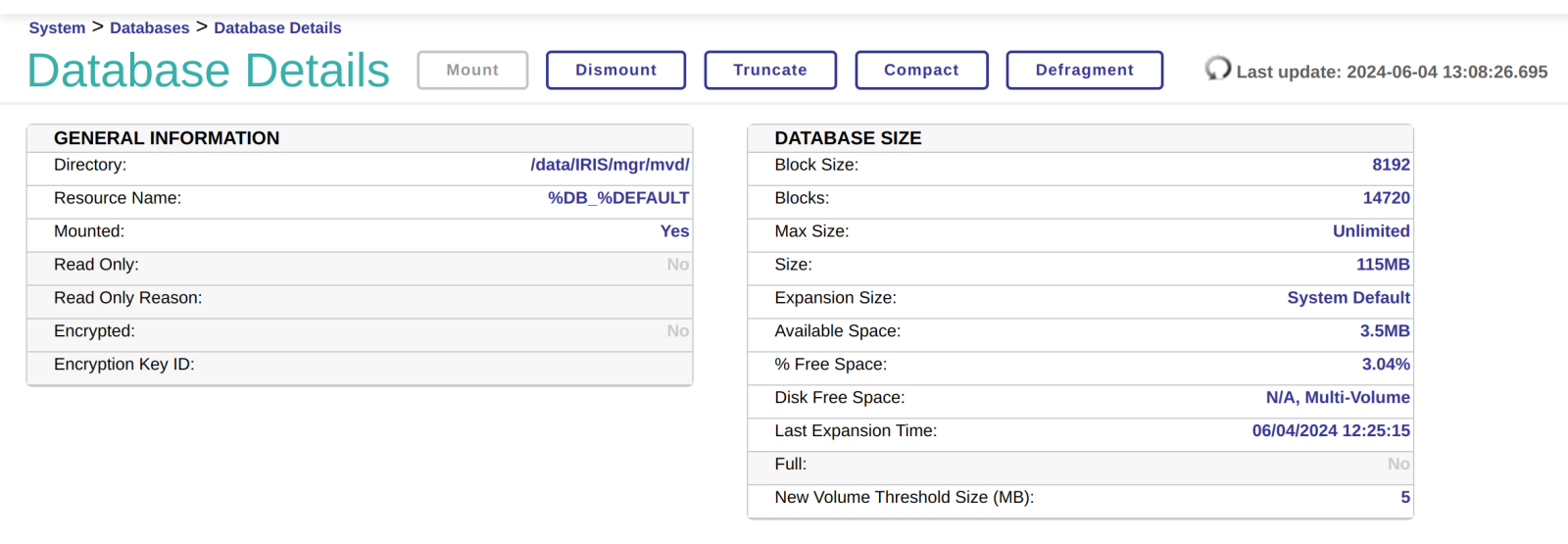 zpm:%SYS>install "zpm-registry"Y ahora le podemos echar un vistazo a la "salsa" de base de datos multivolumen en la interfaz de usuario de la base de datos: