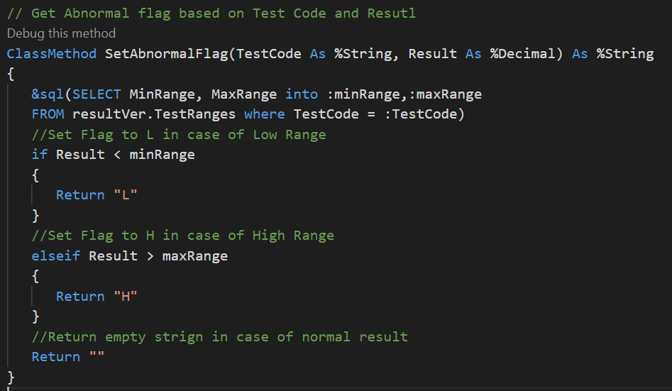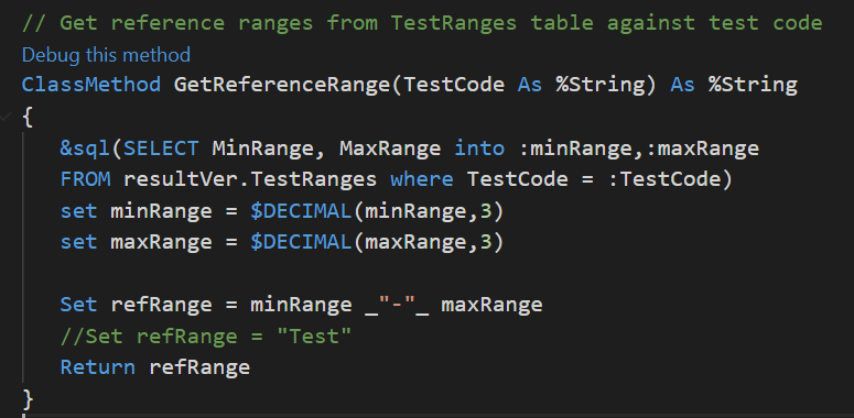 Paso 2: Necesitamos crear una función personalizada para obtener el rango de referencia, para lo que creé la función GetReferenceRange () ClassMethod en la clase de utilidad. Ten en cuenta que esta clase debe extenderse desde EnsRule.FunctionSet.png)