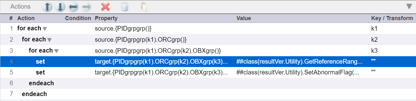 Paso 3: Ahora usaremos estas funciones en Transformación de datos (UpdateReferenceRangesDTL). Necesitamos usar foreach loop contra los segmentos repetidos:.png)