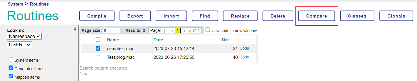 Las comparaciones de rutinas usan la rutina del sistema %RCMP o el Portal de Administración.