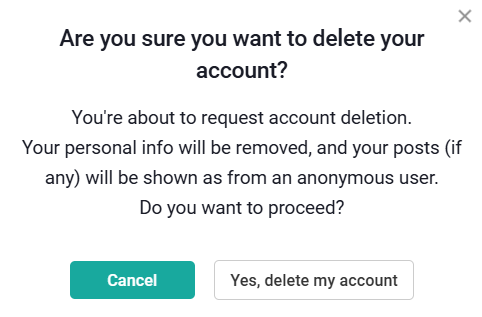 💬 ¿Necesitáis ayuda? Si no podéis eliminar vuestra cuenta o tenéis alguna pregunta, no dudéis en contactar con nuestro equipo mediante un mensaje privado en la Comunidad.