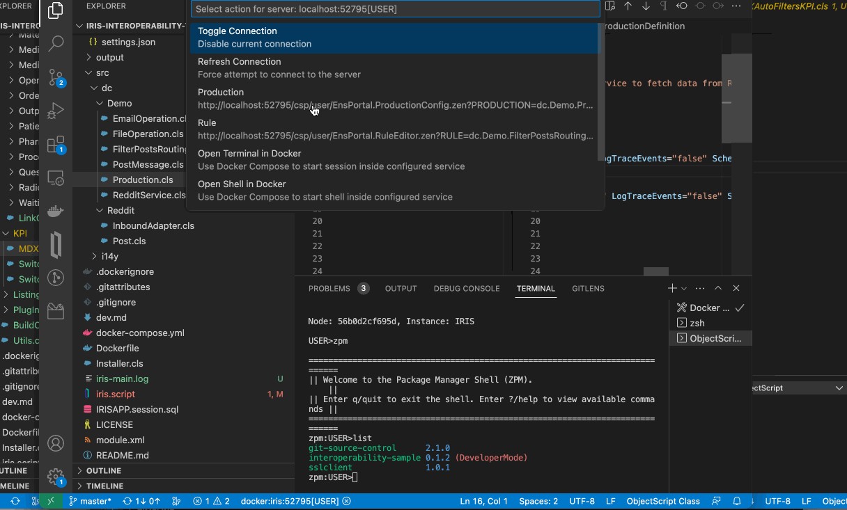 zpm "install git-source-control"do##class(%Studio.SourceControl.Interface).SourceControlClassSet("SourceControl.Git.Extension")Y cargar vuestra solución como un módulo a continuación, por ejemplo como aquí: