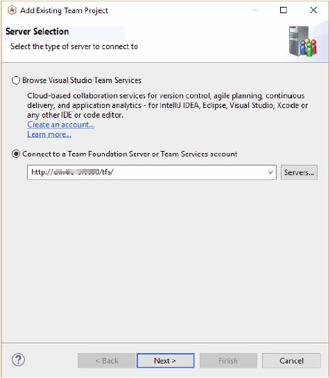 - Seleccionamos tu servidor TFS (con un icono de un enchufe)