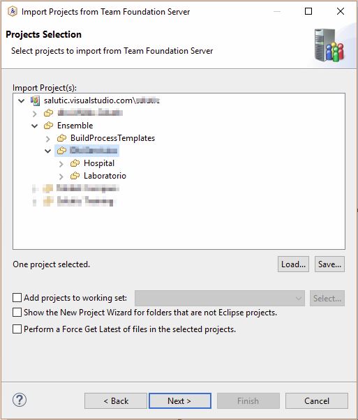 Es importante diferenciar el espacio de trabajo de TFS y el espacio de trabajo de Atelier (workspace), podrías ser diferente. El primero es donde los ficheros serán almacenados en tu ordenador desde TFS, y el segundo es donde almacenamos el proyecto de Ensemble, solo la definición.