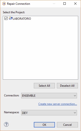 - La primera vez (si no has guardado el fichero .buildpath en TDS), preguntara sobre el servidor Ensemble que estas usando (Cambiar conexión)