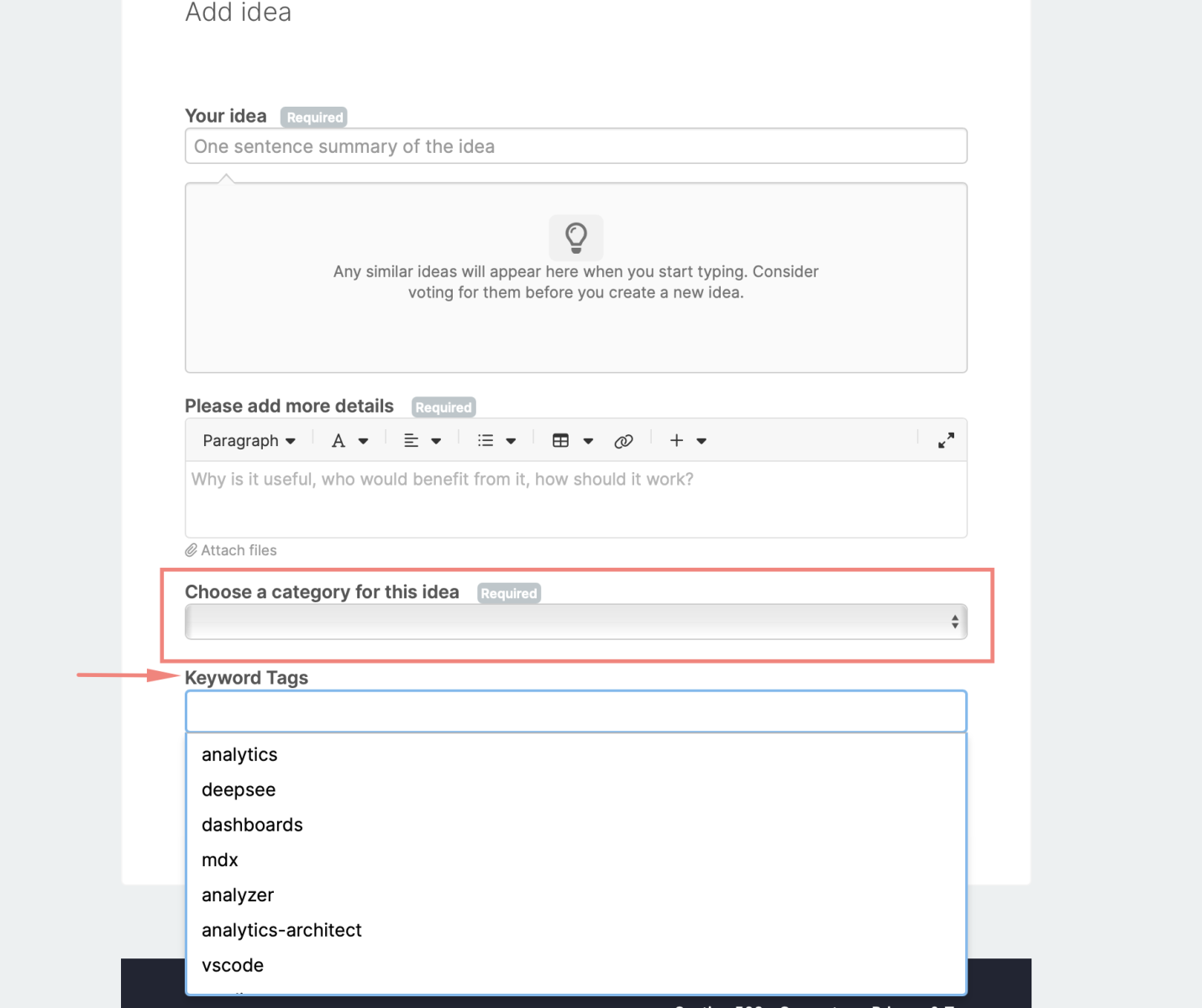 Categorías de ideas en InterSystems Ideas