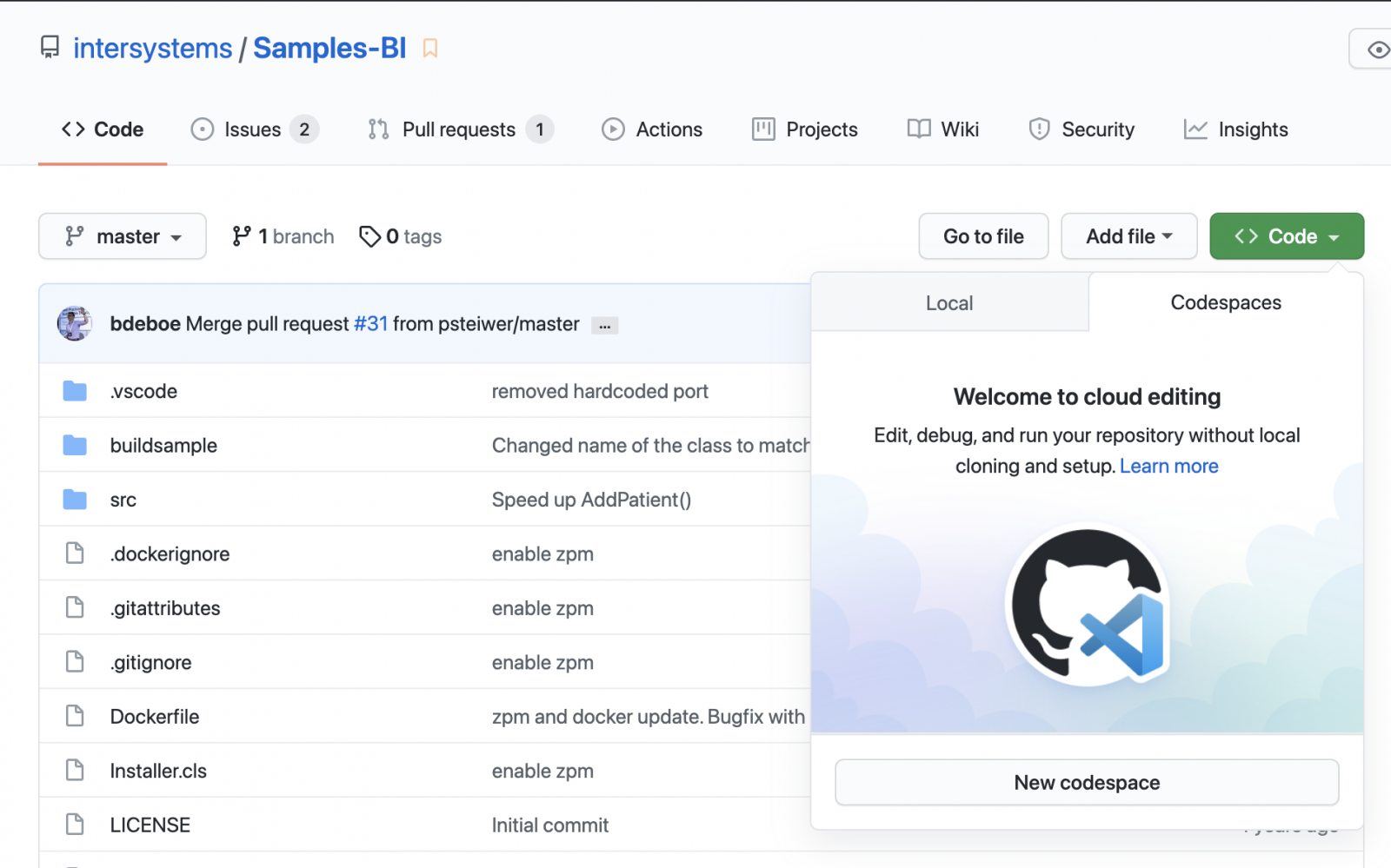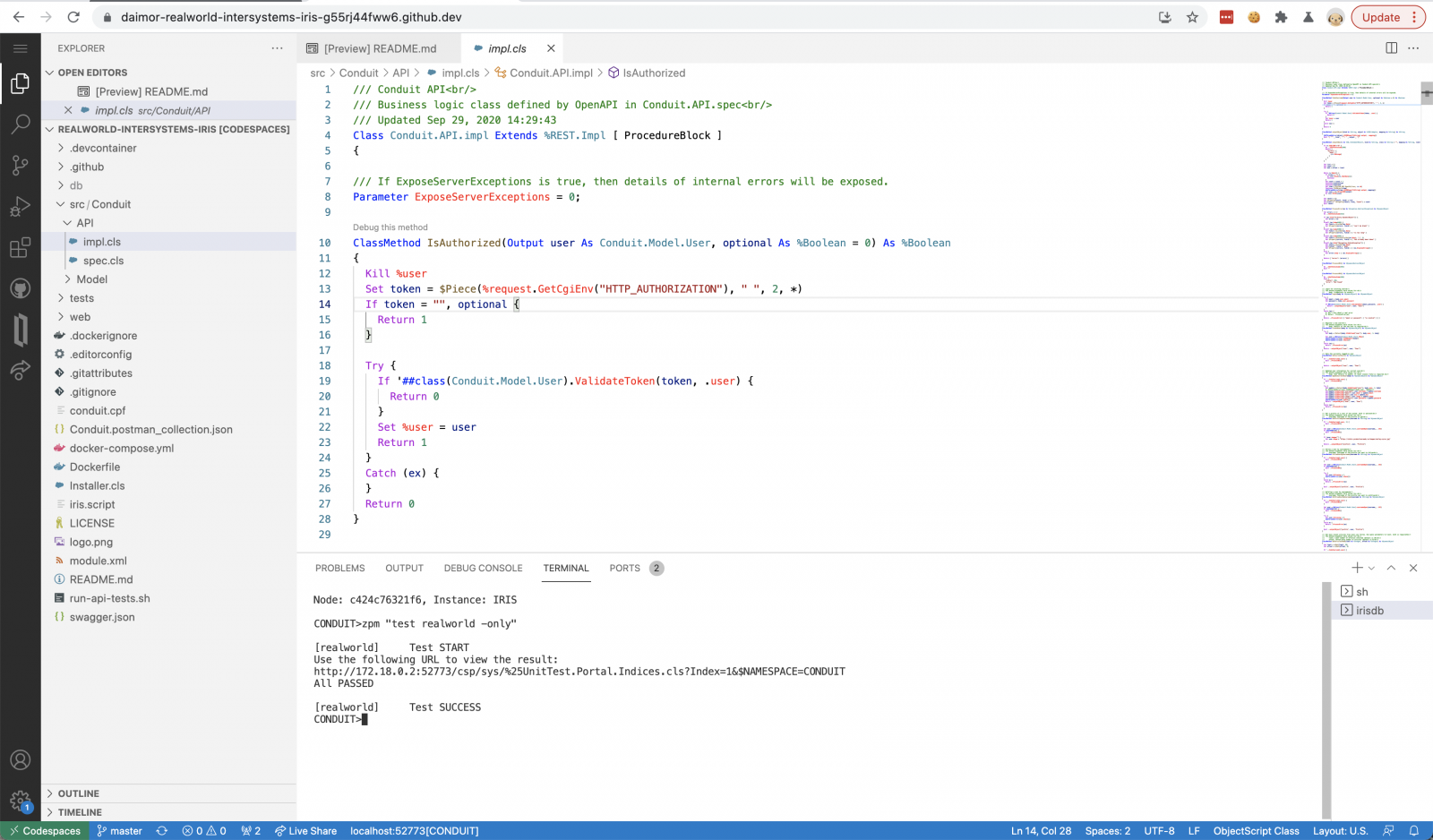 Logramos ejecutar VSCode e IRIS en la nube, pero tuvimos que hacer algunas cosas manualmente para que estuviera listo. Pero también es posible hacer que tu repositorio esté listo para el desarrollo desde el inicio.