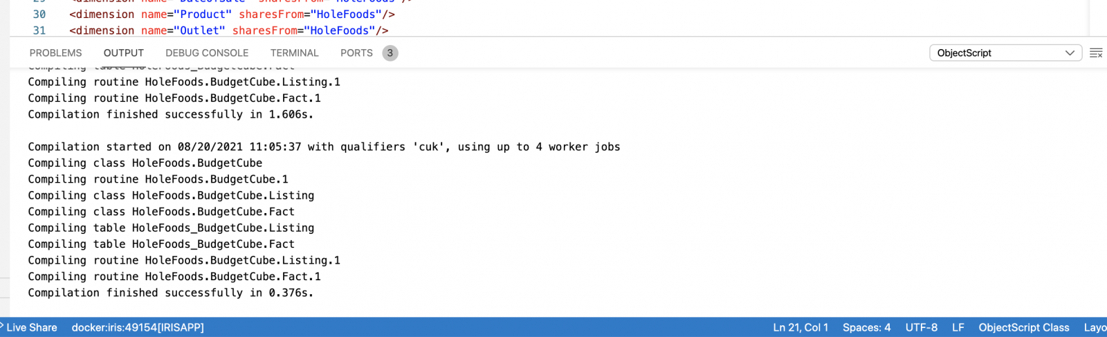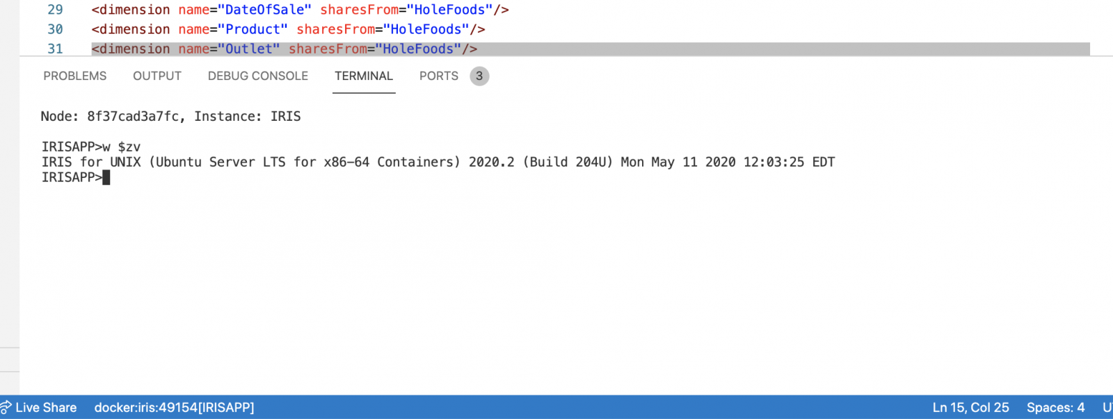 Además, ya hay una sintaxis resaltada, lo único que falta es ejecutar el propio IRIS. Esto se puede hacer con docker-compose ampliado, donde el code-server será como un servicio más junto a IRIS