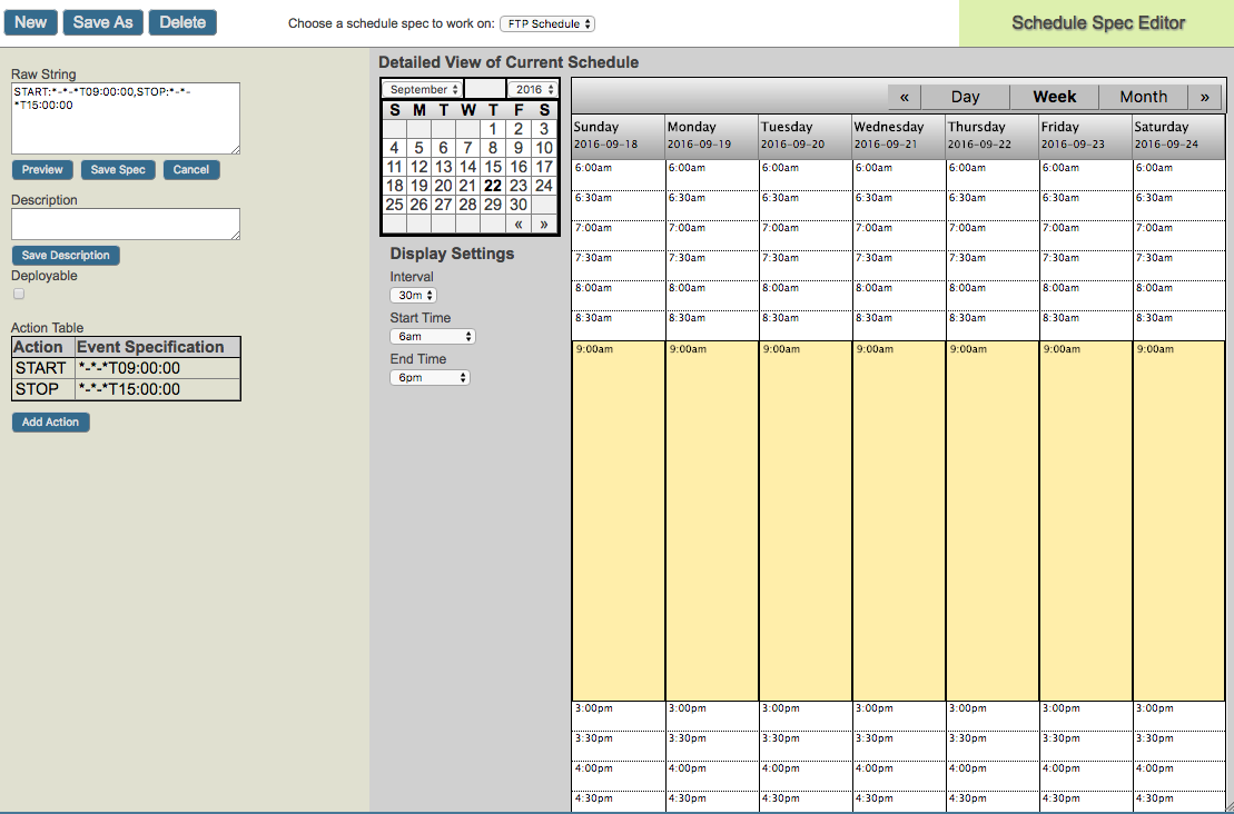 El Programador de Ensemble se utiliza para encender y apagar automáticamente los hosts en determinadas fechas y horas. Podrías usarlo si, por ejemplo, solo quisieras ejecutar un host de negocios de 9:00 a 17:00 todos los días. Por el contrario, si desea activar un evento para que ocurra en un momento específico, por ejemplo, un trabajo que se ejecuta a la 01:00, para agrupar y enviar todas las transacciones del día anterior en un archivo, recomendamos otros métodos como el Administrador de tareas.