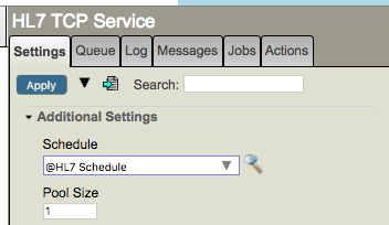 Puede ver que el servicio HL7 TCP está programado para comenzar a las 09:00 y terminar a las 17:00: