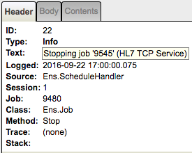 [7] Stopping job '9545' (HL7 TCP Service)