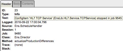 [8] ConfigItem 'HL7 TCP Service' (EnsLib.HL7.Service.TCPService) stopped in job 9545