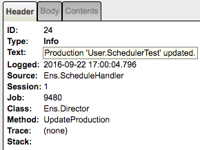 [9] Production 'User.SchedulerTest' updated.