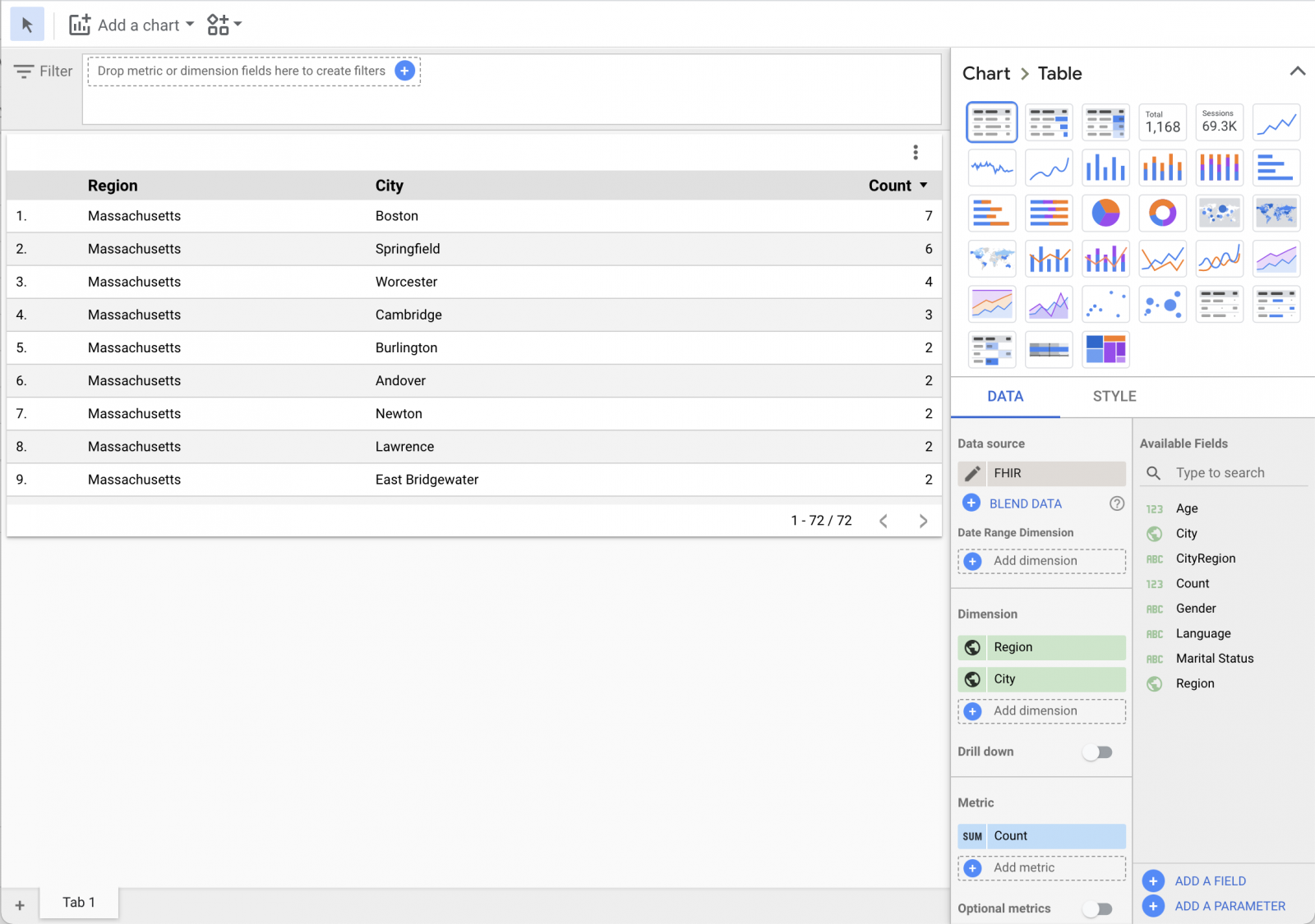 Conector de Google Data Studio con FHIRaaS