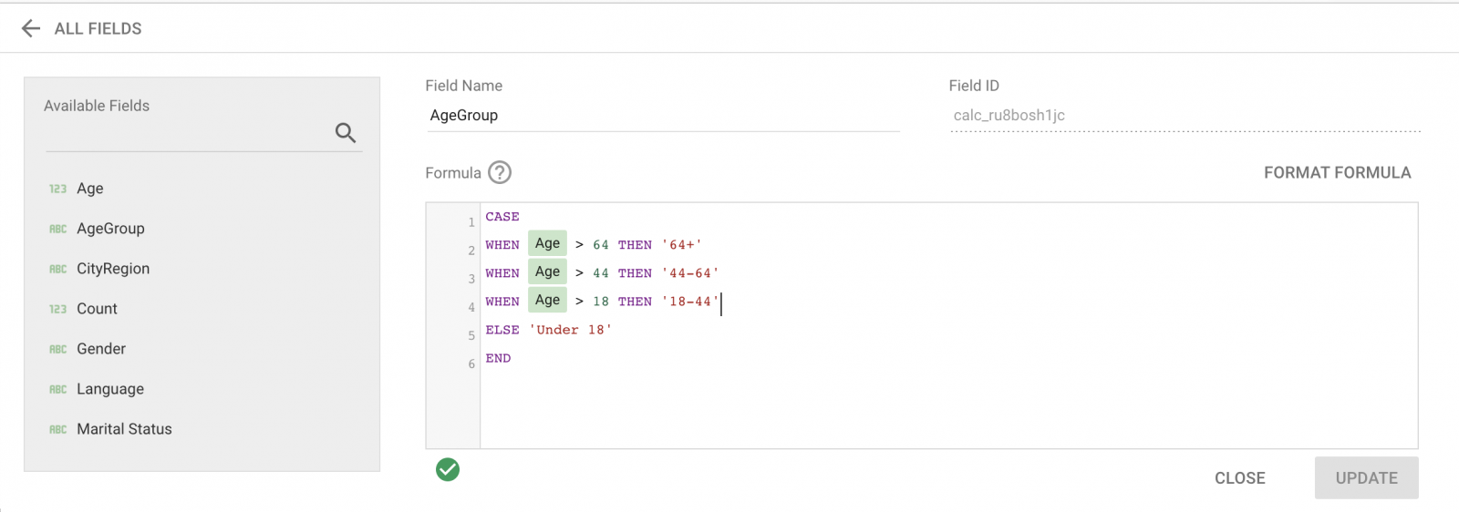 En Explorer y Report, se puede añadir cualquier campo personalizado, que puede estar basado en uno o más campos. Si necesitara tener un informe por grupos de edad.