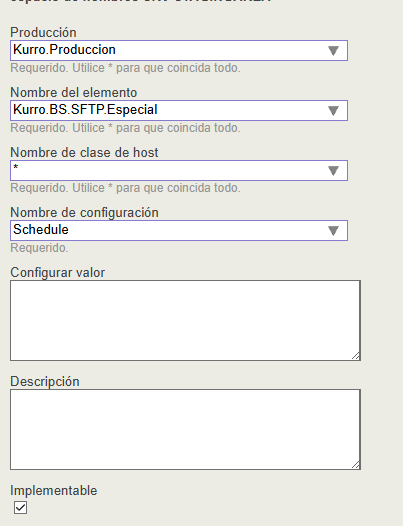 Pero uno de los elementos (Kurro.BS.SFTP.Especial) no debe de tener esta configuración, por lo que he creado una entrada para este elemento