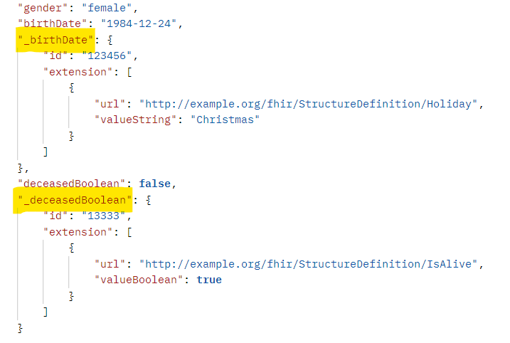El guion bajo le indica a FHIR que estás accediendo al Elemento base subyacente del tipo de dato primitivo.
