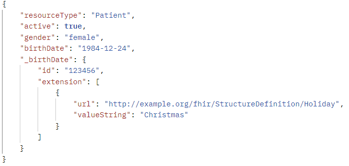 Si creáis el recurso FHIR utilizando un objeto dinámico, podéis acceder directamente a la nueva extensión primitiva: