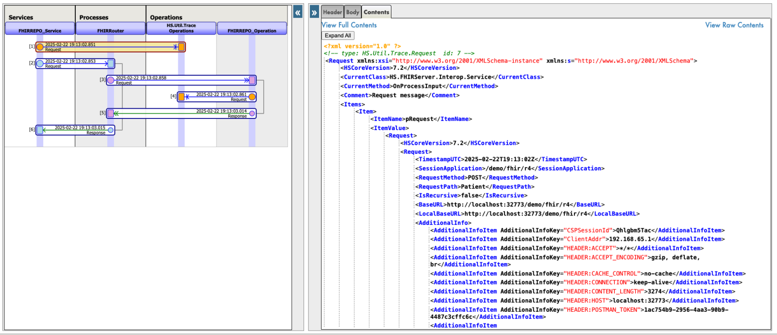 - HS.FHIRServer.Interop.Operation, con la propiedad TraceOperations establecida a *FULL*