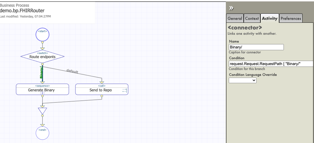 Veamos el Business Process llamado FHIRRouter: