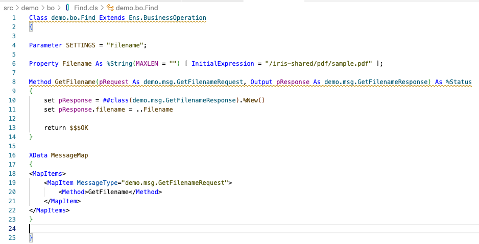 De hecho, esta Business Operation Find siempre devuelve el mismo nombre de archivo: