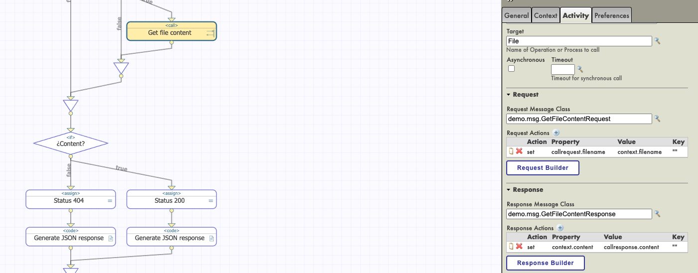 Si tenemos un nombre de archivo, entonces, llamamos a otra Business Operation llamada File para obtener el contenido de este archivo, codificado en base64: