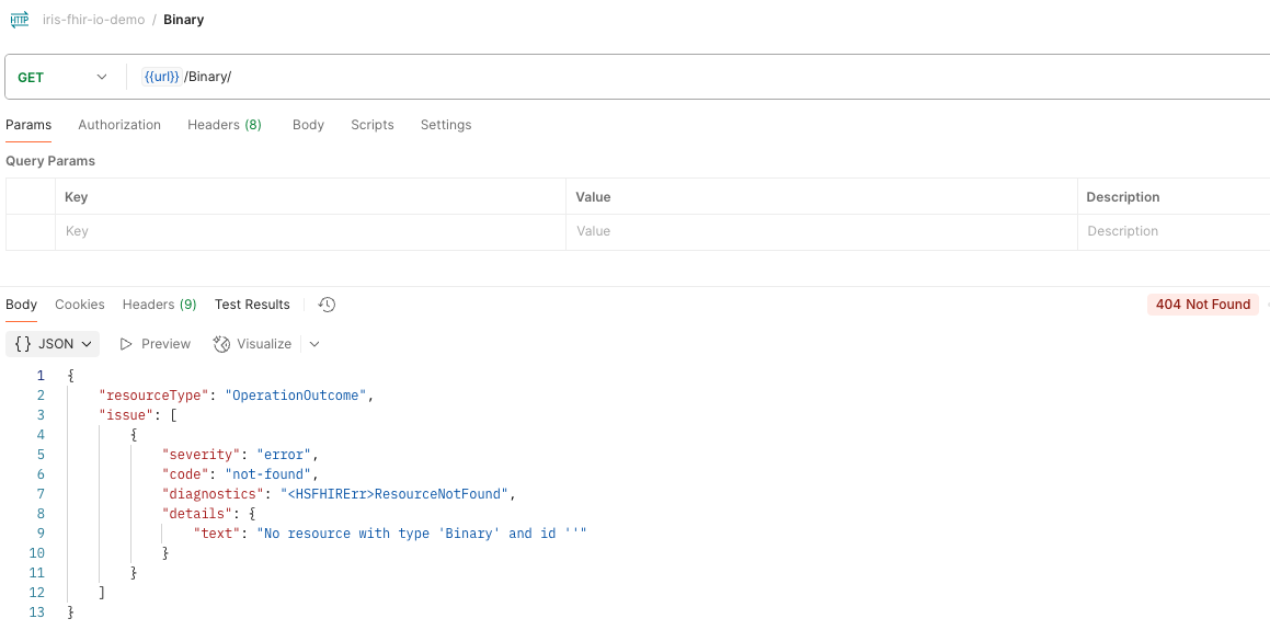 Cuando creamos un repositorio FHIR en IRIS, tenemos un endpoint para acceder a la información, crear nuevos recursos, etc. Pero hay algunos recursos en FHIR que probablemente no tengamos en nuestro repositorio, por ejemplo, un recurso Binary (este recurso devuelve un documento, como un PDF, por ejemplo).