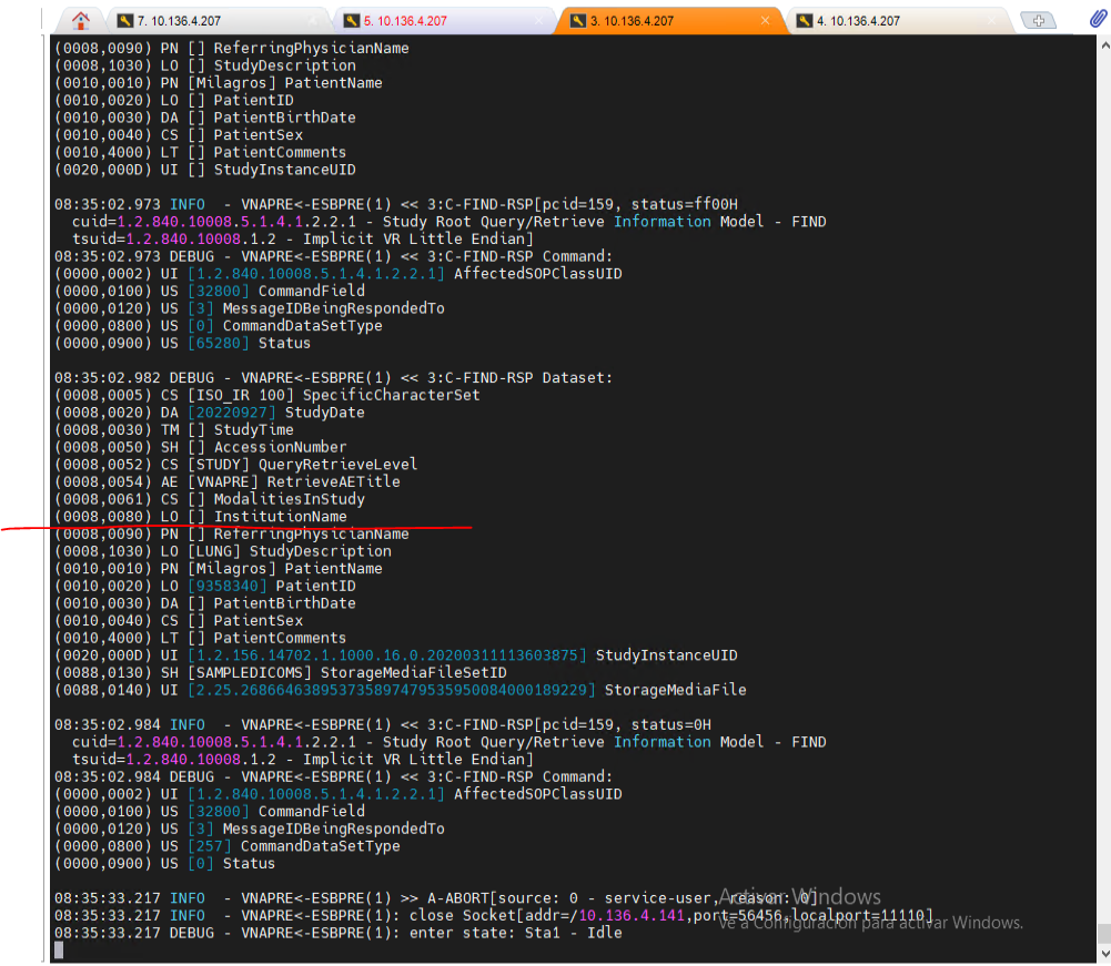 Actualmente disponemos de un fichero titulado: "Imagen PatientID 9358340 PatientName Milagros ReasonForStudy 350290 InstitutionName 350290  StudyDate 20220927.xml" , en el cual disponemos del siguiente InstitutionName: