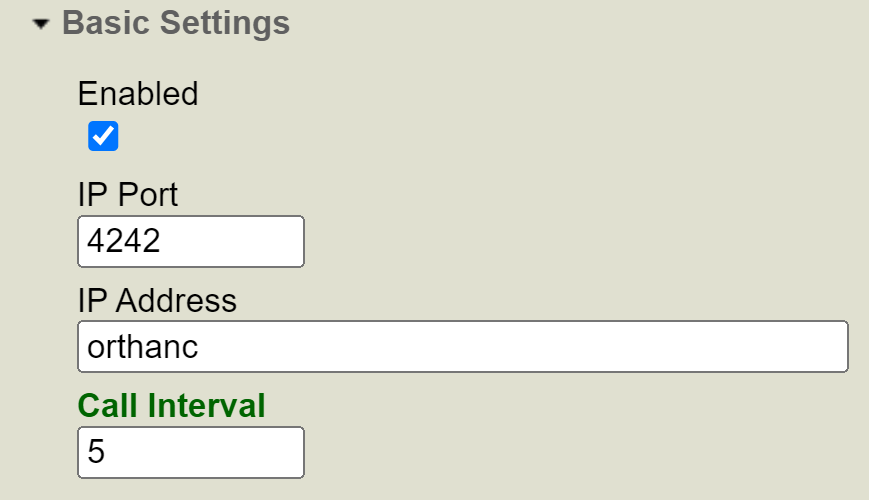 Hemos declarado como IP el nombre del hostname especificado en el docker-compose en el que se encuentra desplegado Orthanc al igual que el puerto.