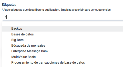 Las Etiquetas permiten describir de forma más precisa el contenido de la publicación. Podéis elegir del listado: el lenguaje, tecnología, Sistema Operativo, dominio, etc. Por supuesto, podéis añadir más de una etiqueta. No es obligatorio cumplimentar este campo.