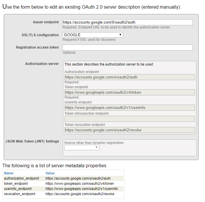 Por último, es necesario que se configure InterSystems IRIS como cliente del Servidor de Autorización de Google.