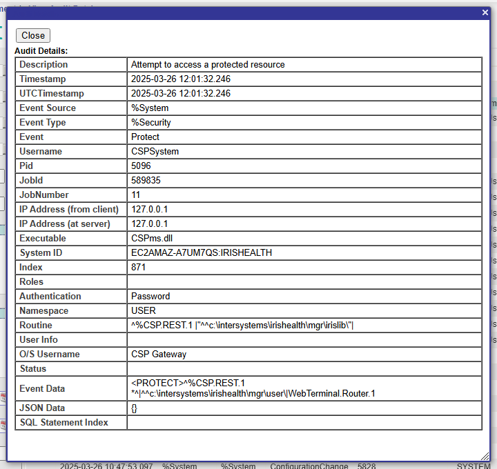 En IRIS, se puede investigar la causa del error 401, con las paginas del Audit, que informan de la naturaleza del error interno: