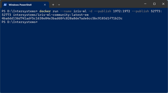 docker run --name iris-ml -d --publish 1972:1972 --publish 52773:52773 intersystems/iris-m