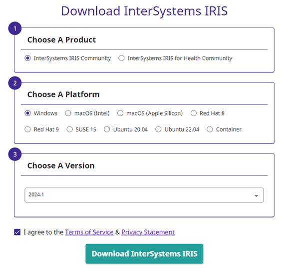 Si eres de la vieja escuela, puedes descargar una versión gratuita para evaluarla. Sin embargo, es importante tener una cuenta de InterSystems. Consúltala en https://login.intersystems.com/login/SSO.UI.Register.cls.