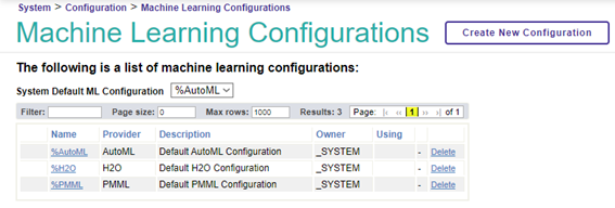 En este punto, puedes ver las configuraciones del proveedor de ML instaladas.