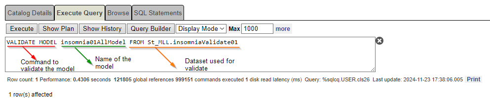 VALIDATE MODEL insomnia01SleepModel FROM St_MLL.insomniaValidate01
