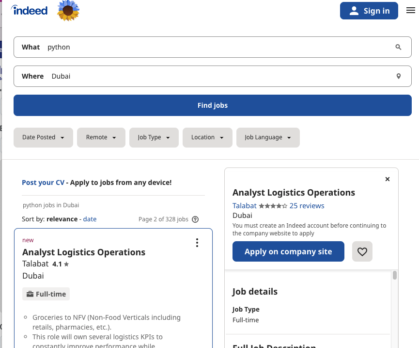 URL = https://ae.indeed.com/jobs?q=python&l=Dubai&start=0
