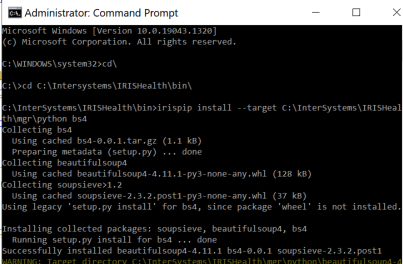irispip install --target C:\InterSystems\IRISHealth\mgr\python bs4