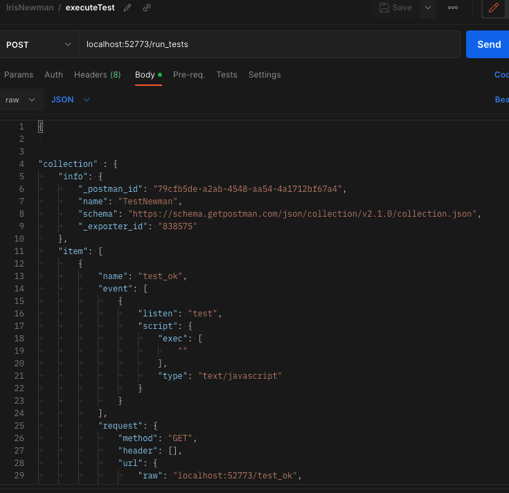 Ejemplo del cuerpo de la llamada (es el contenido del fichero de la colección exportado desde Postman):