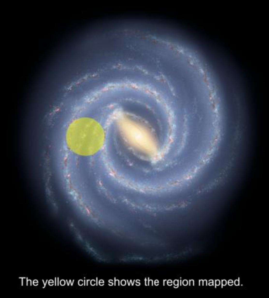 Representación del área de la Vía Láctea que está siendo estudiada por Gaia. (Reproducido gracias a la Licencia Creative Commons By Attribution 4.0 license. Credit: "galaxymap.org, Twitter: @galaxy_map").