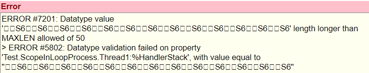 Así que si tienes un bucle dentro de un BPL, e introduces un «Scope» (Ámbito) en él (y probablemente una actividad «Continue»), y tienes, por ejemplo, unas 15 o más iteraciones, se producirá el error anterior.
