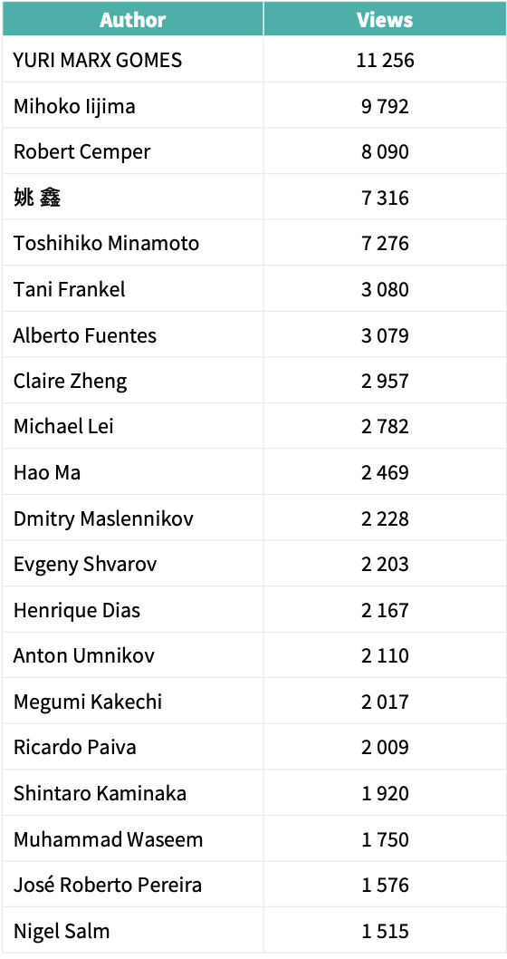 Autores cuyos artículos consiguieron el mayor número de visualizaciones en la Comunidad de Desarrolladores durante el año 2021.
